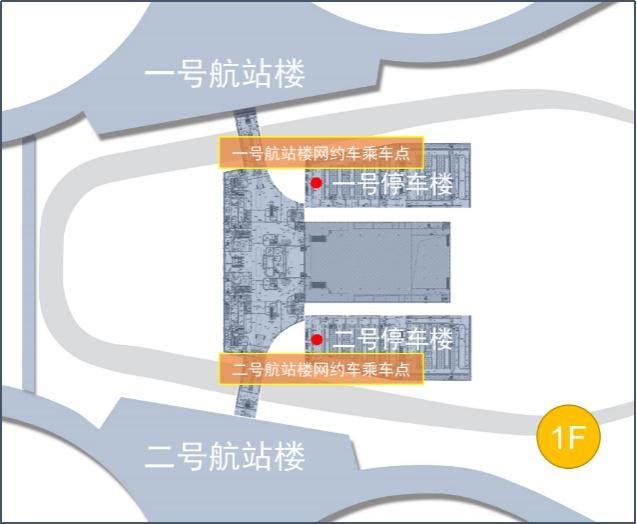 ● 一号航站楼网约车乘车点:一号停车楼L1层网约车上客区。