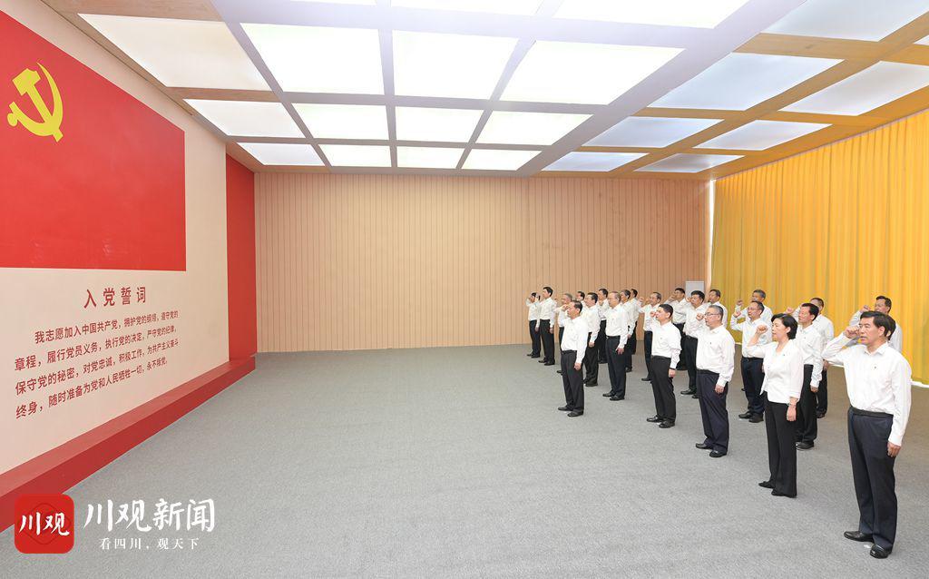 参观结束后,省级党员领导同志步行至宣誓厅,在彭清华带领下集体重温入党誓词。大家面向鲜红的中国共产党党旗,郑重举起右拳,庄严的宣誓声响彻大厅,让在场每位同志都接受了一次深刻的党性教育和思想洗礼。