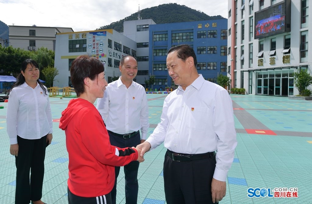 赵蓉从事幼儿教育36年,被评为省优秀幼儿教师。彭清华来到她工作的雅安市石棉县幼儿园看望慰问,感谢她长期扎根基层、情系幼教、甘当园丁,帮助孩子们健康成长。该园“一园三区”在园幼儿2000余人,彭清华细致询问生源结构、师资队伍、课程设置、卫生保健等情况,并步行察看园区文化建设。他指出,办好学前教育关系党和国家事业未来。幼儿教师肩负着保育和教育双重责任,要关心爱护幼儿、潜心培幼育人、传播优秀文化,帮助他们从小养成良好品行习惯,健康快乐成长。当前,人民群众对享有幼有所育的高质量公共服务有了更多新期待。要用好推进农村“两项改革”创造的有利条件,进一步优化资源配置,加快补齐学前教育短板,着力构建以普惠性资源为主体的办园体系,扎实解决好“入园难”“入园贵”等困扰老百姓的烦心事。