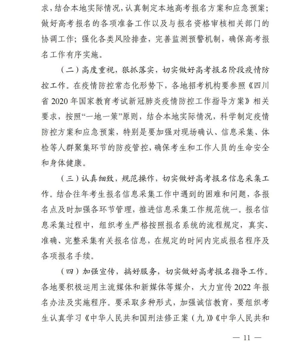 时间:2021-09-14 18:11:41 来源:川观新闻9月14日,记者从省教育考试院获悉,四川2022年普通高考(含艺术、体育类)网上报名定于10月8日至13日进行,详情如下: