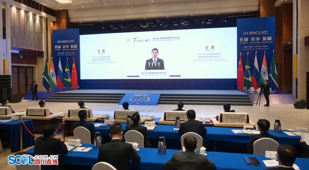 四川在线综合消息 今年是金砖国家合作15周年,11月16日,第七届金砖国家国际竞争大会开幕式以线上方式举行,由国家市场监督管理总局、四川省人民政府联合承办,设北京、成都两个会场。国务委员、国务院反垄断委员会主任王勇在北京会场出席开幕式并致辞。四川省委书记彭清华在成都会场致辞。巴西经济防务行政理事会主席马塞多、俄罗斯联邦反垄断局局长沙思科利斯基、印度竞争委员会主席古普塔、南非竞争委员会主席博纳科勒在各自国家会场出席并致辞,最高人民法院常务副院长贺荣在北京会场致辞。国家市场监督管理总局局长、国务院反垄断委员会副主任张工主持开幕式,并介绍《金砖五国竞争机构负责人成都联合声明》有关情况。