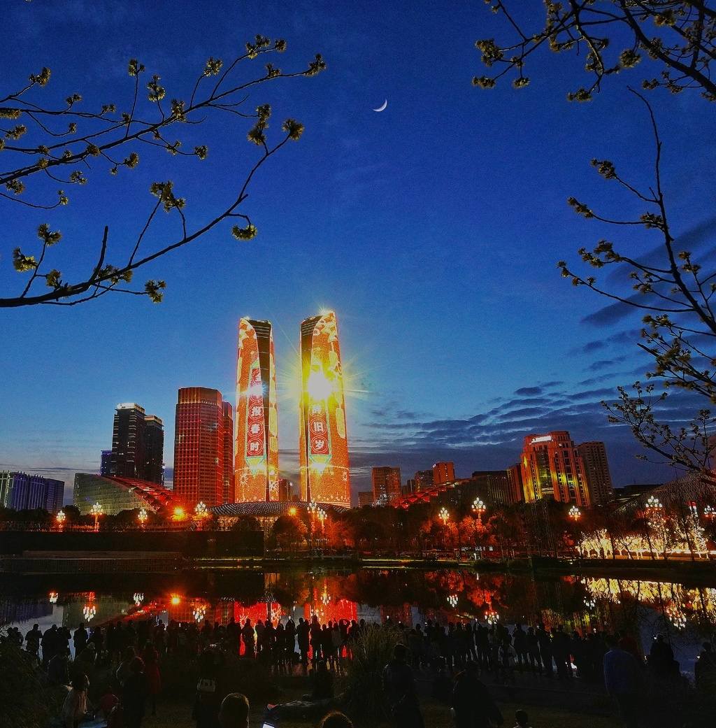 成都金融城双子塔绚丽多彩的灯光秀