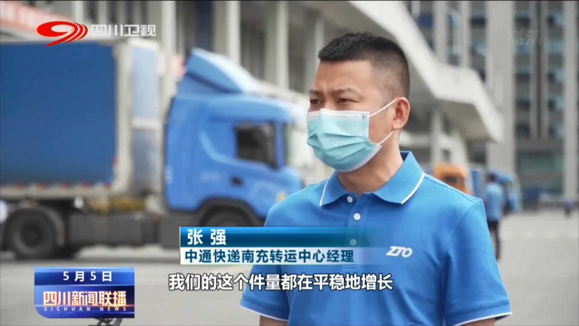 中通快递南充转运中心经理 张强:转运件量每天大概在100万件左右,我们的这个件量都在平稳地增长,今年我们第一季度的运件量达到了9000万件以上。