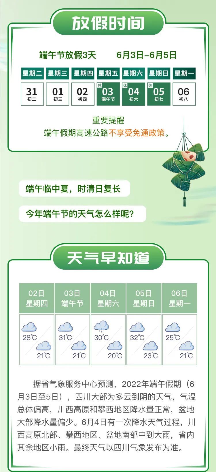 四川这份指南很“粽”要:端午节高速不免费
