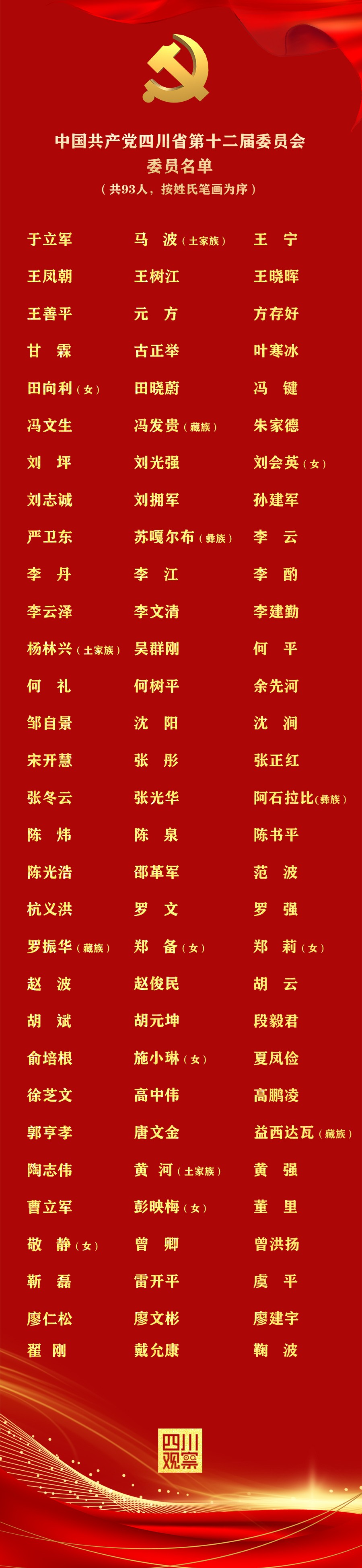 今天(30日)上午,中国共产党四川省第十二次代表大会在成都举行闭幕会,大会选举产生了新一届四川省委。