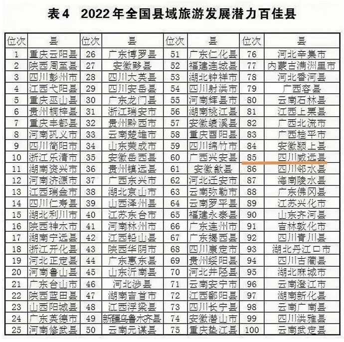 喜报!内江威远入选2022全国县域旅游发展潜力百佳县