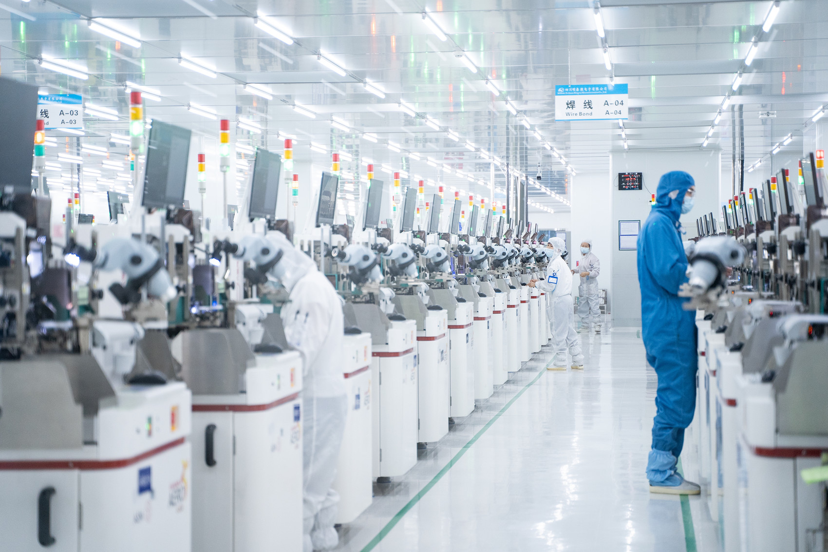 工人们在内江明泰微电子产业园内工作,该企业可日产微电子产品2000万只。唐广 摄