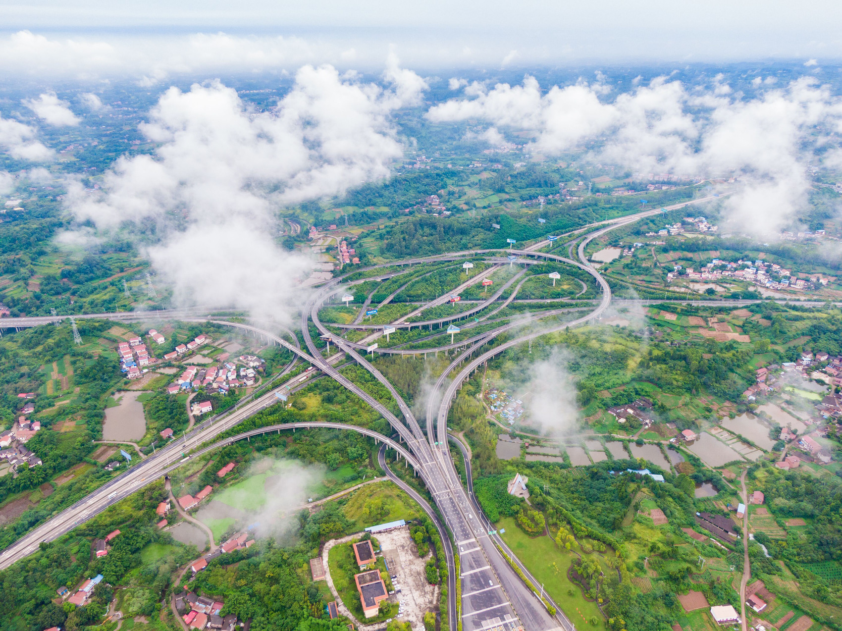 内江正全力推进成渝高速公路扩容改造和内江至大足等高速公路项目建设,形成“八纵四横一环”高速公路网。 唐广 摄