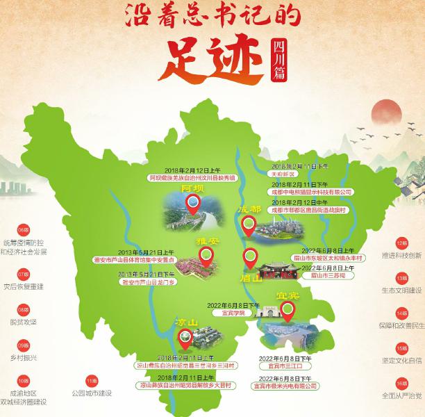 从2013年初夏到2022年盛夏,巴蜀大地留下了习近平总书记坚实的足迹;从过去、现在到未来,四川正沿着习近平总书记指引的方向坚定前行。