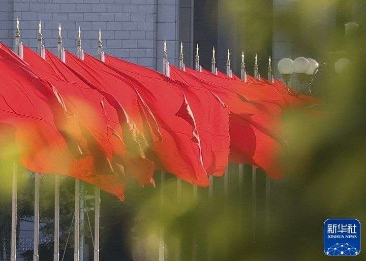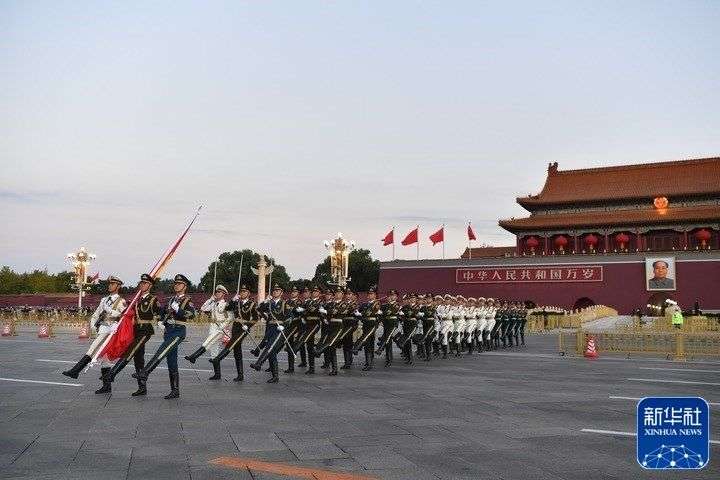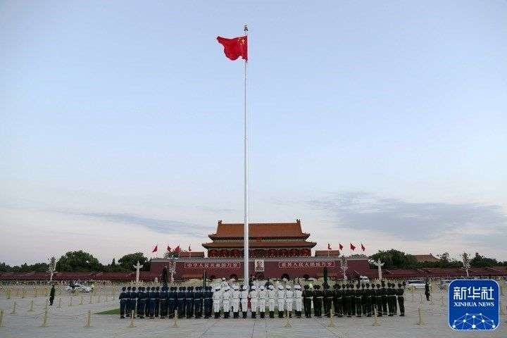 10月16日清晨,北京天安门广场举行升国旗仪式。10月16日,中国共产党第二十次全国代表大会即将在北京人民大会堂开幕。新华社发(武炎龙 摄)