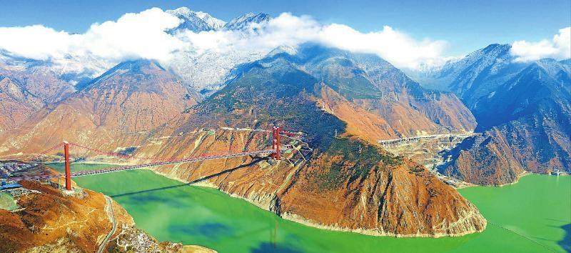 “奋进新时代”主题成就展四川展区参展图片。图为2018年12月建成通车的雅康高速泸定大渡河大桥。 省筹展办供图