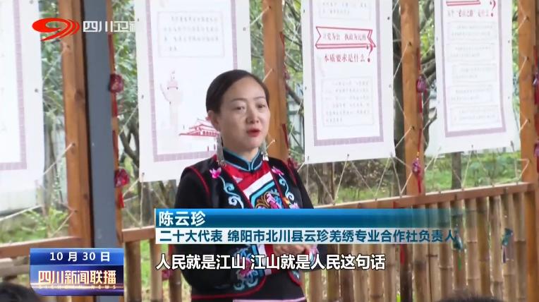 二十大代表、北川县云珍羌绣专业合作社负责人 陈云珍:人民就是江山、江山就是人民这句话,说明总书记把我们老百姓,我们人民是放在心上的,所以接下来作为我们普通的老百姓,把我们的乡村产业发展好,把我们的文化事业做好,为我们的乡村振兴出一份力。