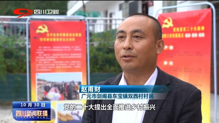 广元市剑阁县东宝镇双西村村民 赵甫财:十个展板很直观,让我们一目了然,党的二十大提出全面推进乡村振兴,使我们农民更有信心。