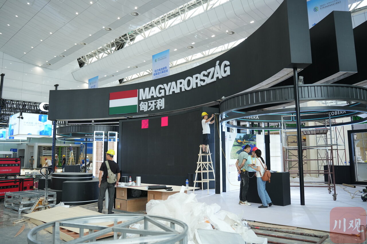 走进会展中心A区,记者一眼看到了主宾国匈牙利、欧阳明高院士工作站、宁德时代等展区的标识牌,施工人员们正紧锣密鼓地进行布展工作。同时,为了保障大会胜利召开,主会场也在有条不紊地开展集中排练。