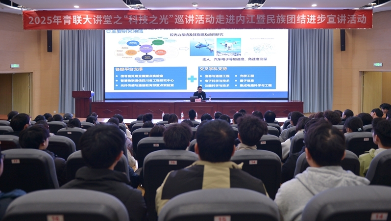 科技之光点亮青春梦想,民族团结凝聚奋进力量。11月21日,内江师范学院,2025年青联大讲堂之“科技之光”省级巡讲活动暨民族团结进步宣讲活动举行,各学..