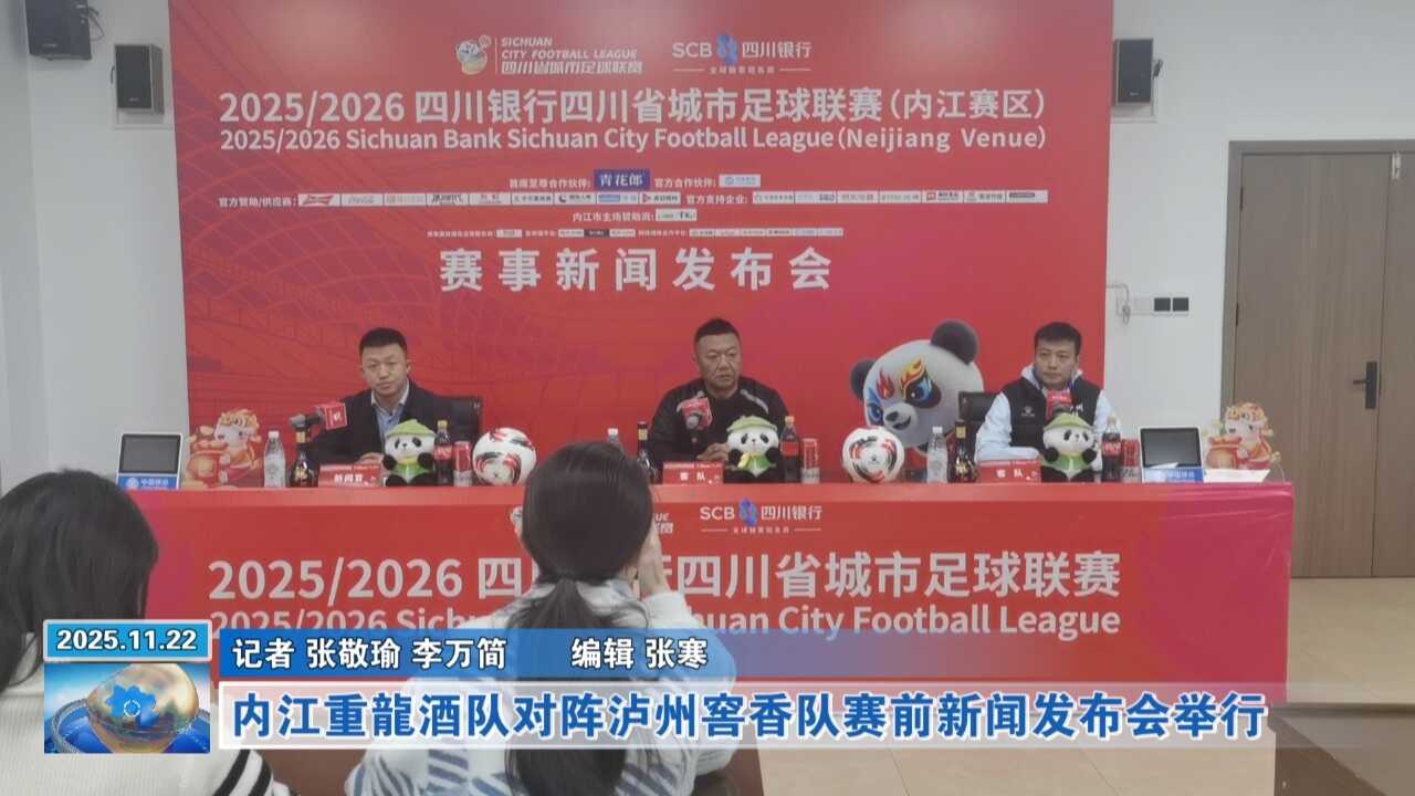 11月22日,2025/2026四川银行四川省城市足球联赛内江赛区,内江重龍酒队对阵泸州窖香队赛前新闻发布会举行。双方教练员和球员代表介绍各自球队备战..