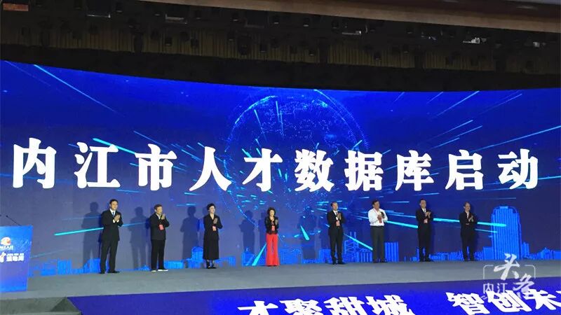 上午9时50分许,匡廷云、干勇、罗平亚、马远良、马波、郑莉、戴震、余先河共同按下大屏,开启内江市人才数据库。