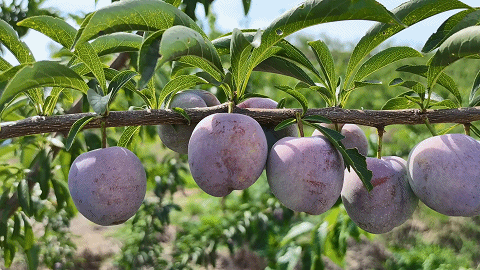 色泽鲜艳、形态圆润的李子挂满枝头