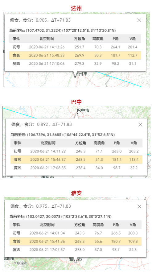 6月21日的日食天象在各地的开始时间会有所不同。想了解自己所在城市的此次日食初亏到复原的时间,可以进入下面网址查询具体位置和时间↓↓