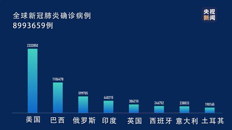 世卫组织:截至欧洲中部夏令时间6月23日15时58分(北京时间6月23日21时58分),全球新冠肺炎确诊病例累计增至8993659例,累计死亡病例469587例。