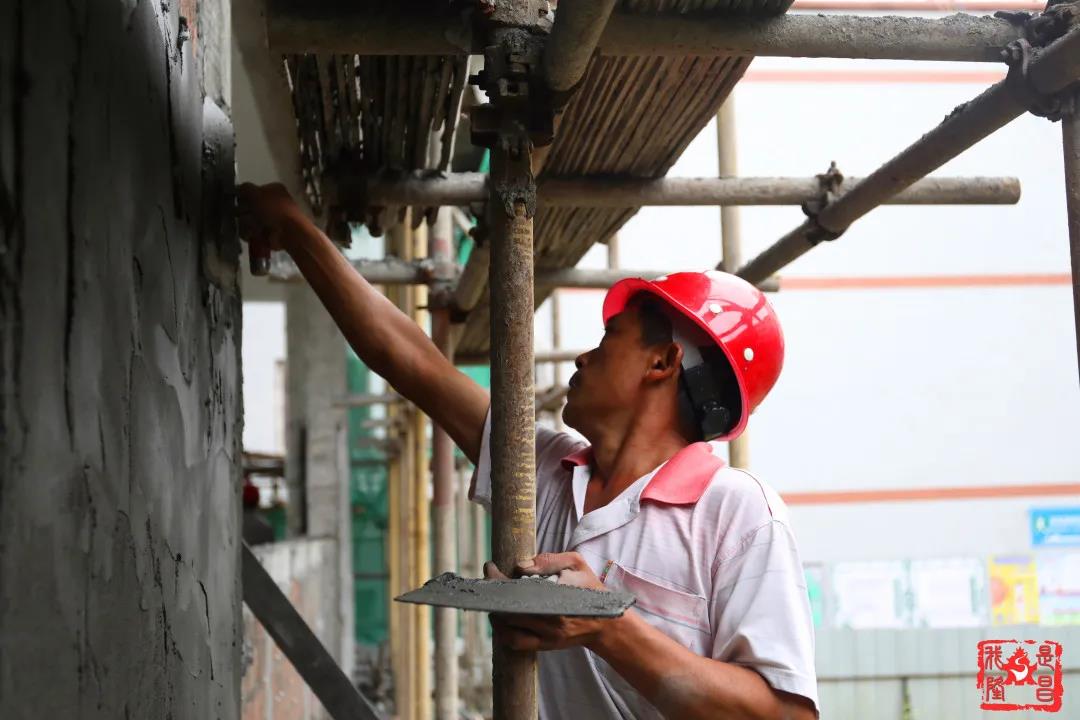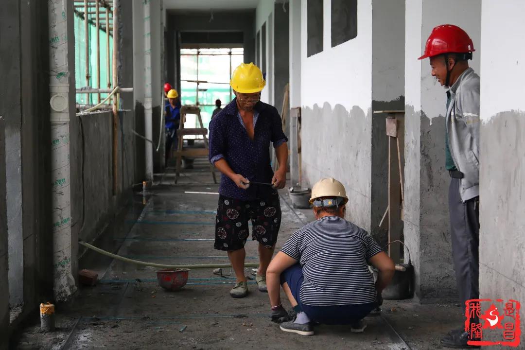 “最近总是下雨,工程进度受到了影响,只要放晴了都在抓紧赶工,希望开学的时候能让同学们看到一栋崭新明亮的教室。”