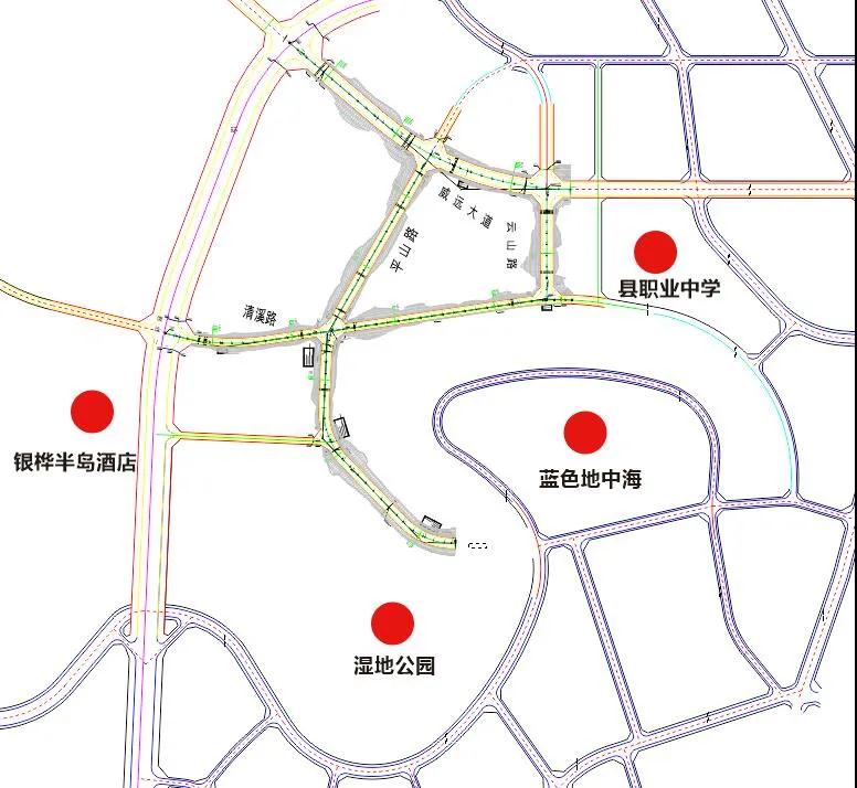 清溪路平山段全长731.44米,城市支路,设计时速20km/h,道路红线宽度16米。其中车行道10米,两侧人行道各3米。