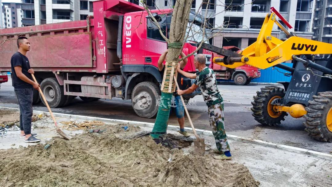 近日,小编在项目现场看到,施工人员正在栽植行道树和铺装人行道路面,为工程的扫尾做最后的冲刺。