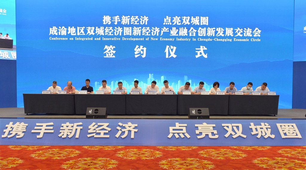 会议现场签约新经济领域相关合作项目14个,总投资59.67亿元。其中,招商项目7个、投资金额41.6亿元,包括川南人工智能算力中心项目、智慧汽车文旅城项目、手机游戏程序研发项目、新能源商用车交易城项目、渝威国际农批冷链城项目、内自绿色食材网络供应链平台项目、互联网+农产品物流批发市场(二期)项目;融资项目7个,贷款(授信)金额18.07亿元。