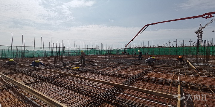 市中区电子产业标准化厂房建设项目位于内江高新区白马工业园区的智茂路和门庭六路,记者在项目现场看到,一座座拔地而起的建筑身披绿装,塔吊高耸,水泥罐车、工程机械车辆往来穿梭,100余名工人绑扎钢筋、摊铺混凝土……各司其职、井然有序,现场一派繁忙景象。