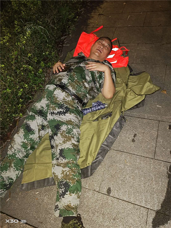 “我们的初心是为党分忧,为民服务,我们的使命是急时应急,战时应战,灾情来临,当党和人民需要的时候,我们将毫不犹豫站在第一线,坚决完成任务!”巡逻时打起十二分精神,救灾时时刻保持头脑清醒,凳子不够,他们就席地而坐;值班休息时,他们吃泡面、啃面包;补觉时,他们就趴在桌上眯一会儿,或者就睡在拼接的凳子上,没有夜间御寒的被子,身上的衣服往往还带着水渍。但是没有一人叫苦叫累,虽难亦援,他们都是最可爱的人。
