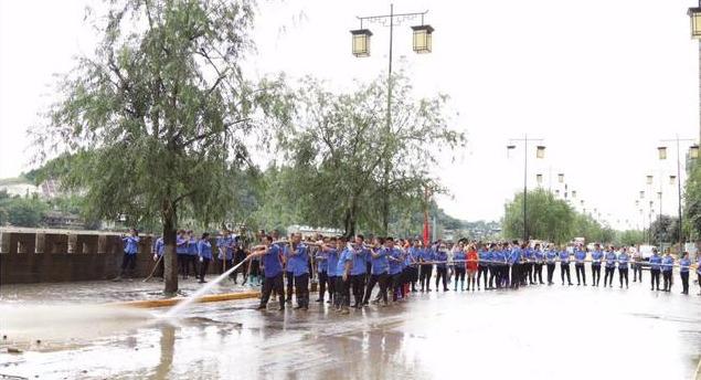 8月19日,经开区党干部职工40人,新发地职工50人,运管所职工20人,交警大队职工30人,城南房地产职工10人组成3个志愿者服务队,调动垃圾车3辆,铲车1辆,手推车10台,对坑洼处的积水,采取接力方式,用铁锹将积水清理走,淤泥铲走,对废家俱、乱石头、断树枝,轻的一个人抱,重的就几个人合力抬,全部装上铲车,将近年来东林十八栋的陈年垃圾和洪水后的淤泥全面清扫,集中清运,清淤行动持续到中午12点才结束,还东林十八栋居民一个干净的居住环境。
