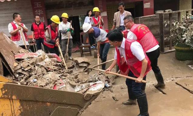 8月19日,县委宣传部、县经信局、资中沙淇实业等多支志愿服务队到球溪镇开展清淤工作。