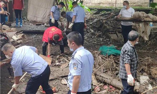 8月19日,资中交警在东林广场开展清淤集中行动。一位独居老人家中一片狼藉,资中交警当即帮老人清理。民警将老人家中被水浸泡的家具、厨具以及衣物等搬至空地晾晒,将房屋里的淤泥、积水清理,并将屋内冲洗了一遍。