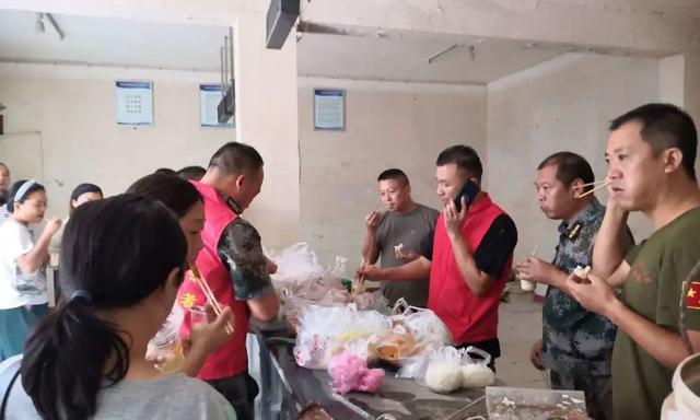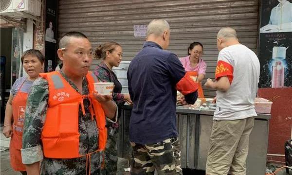 资中球溪镇一早餐店老板免费为抗洪一线的“战士们”提供早餐。