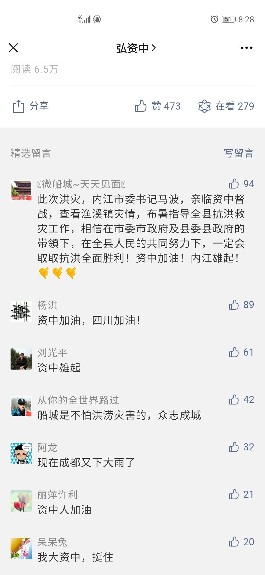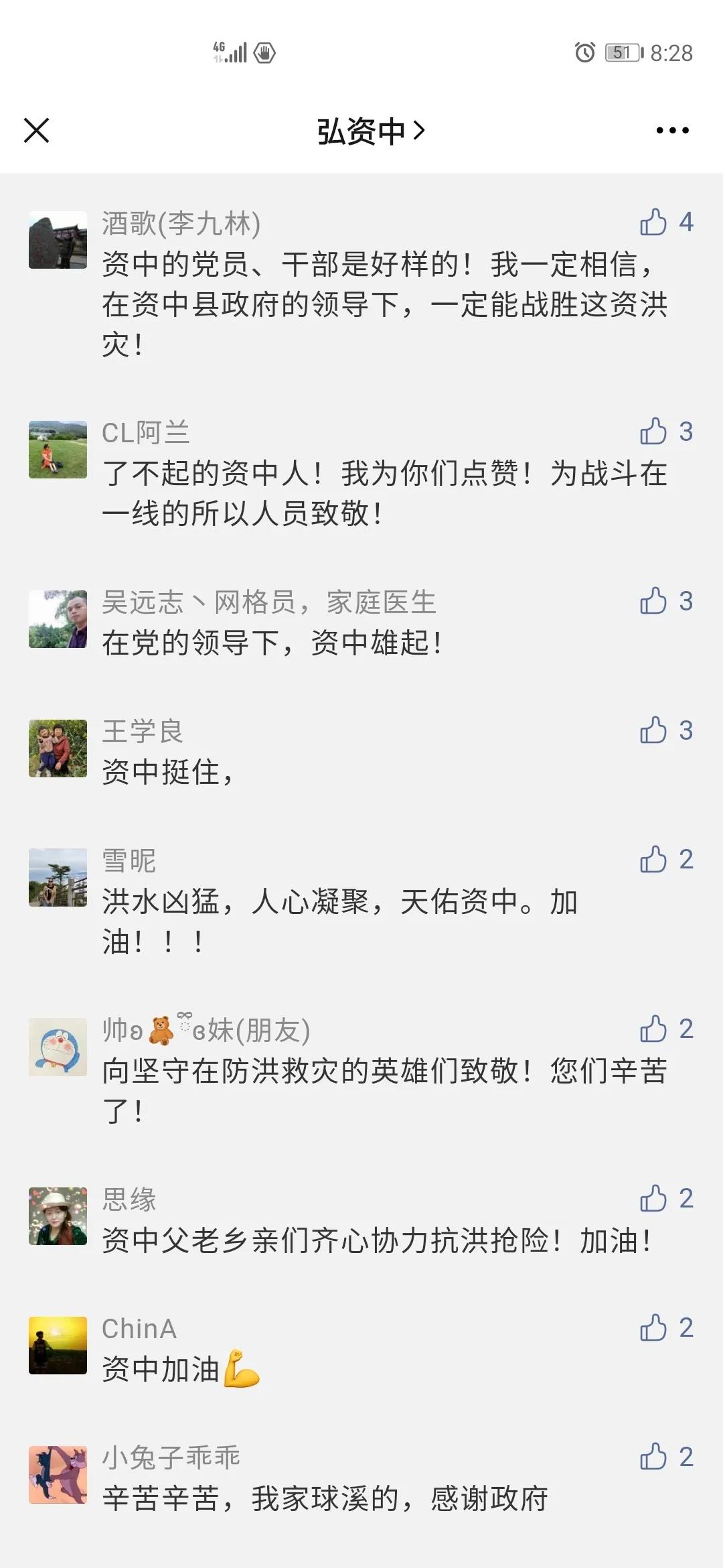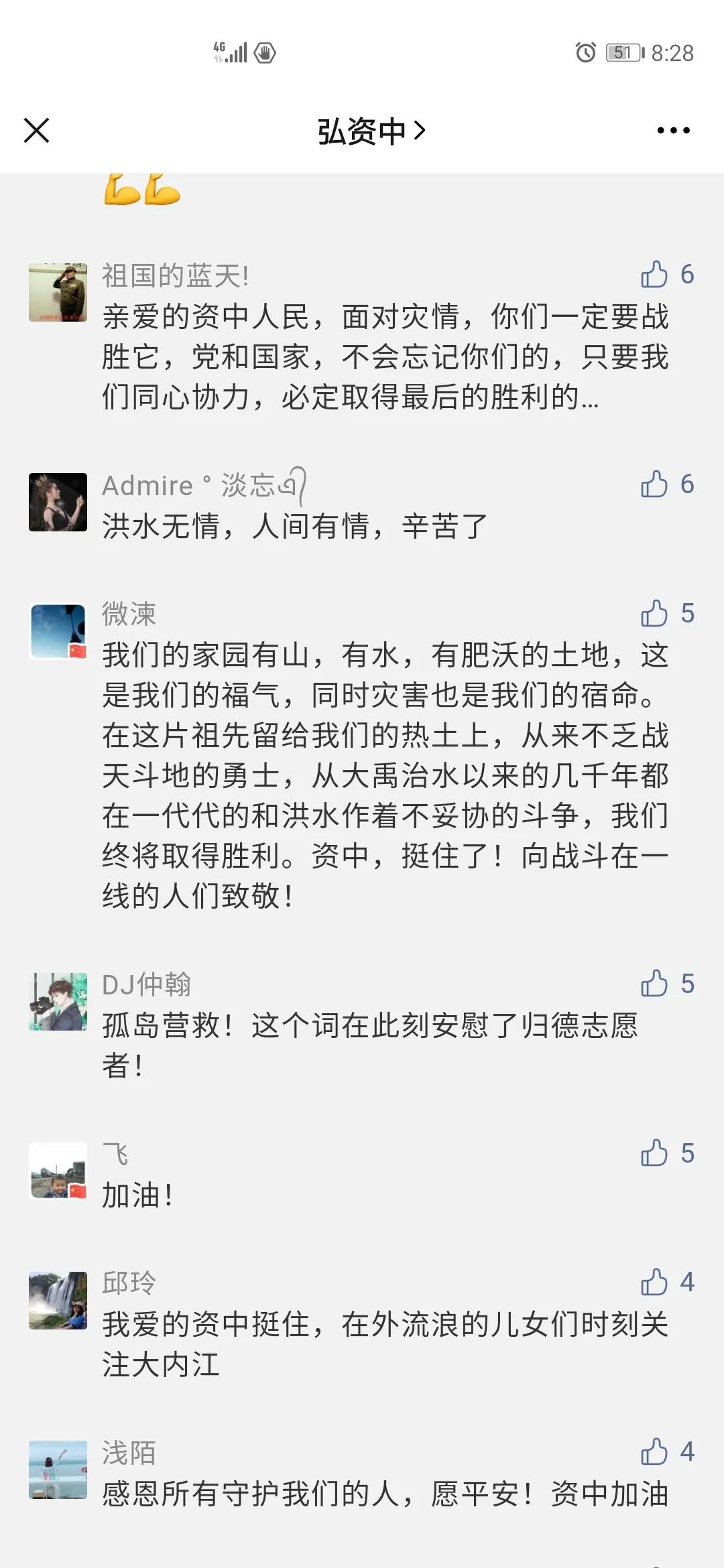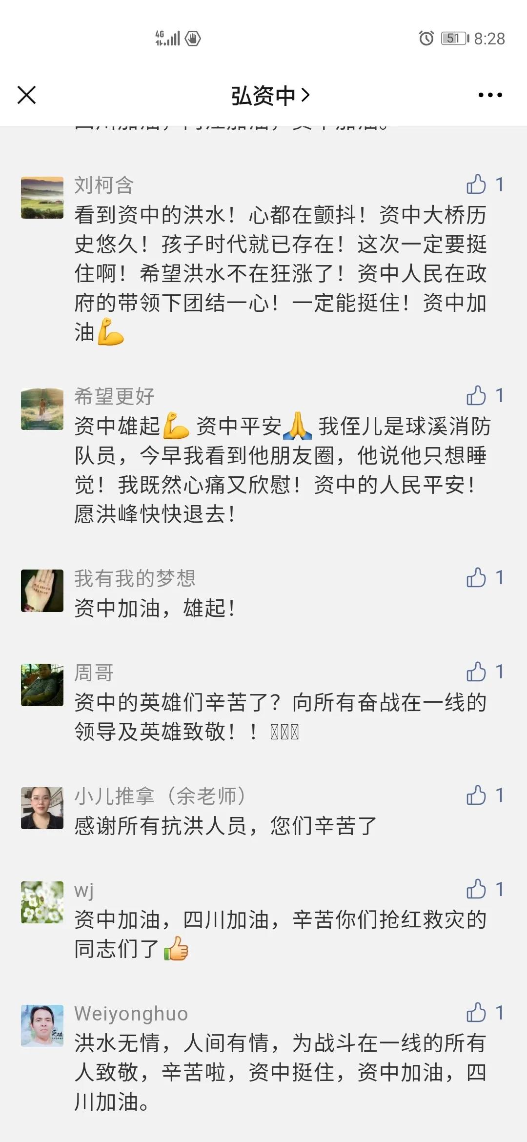 “了不起的资中人,我为你们点赞。”