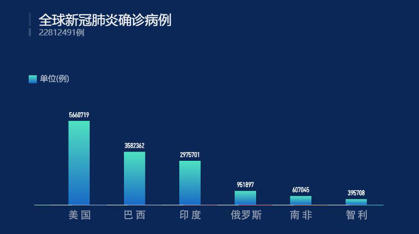 根据世卫组织最新实时统计数据,截至欧洲中部夏令时间8月22日14时09分(北京时间8月22日20时09分),全球累计新冠肺炎确诊病例22812491例,累计死亡病例795132例。