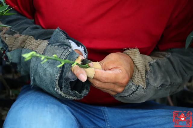 有好苗子才有好果子,秋季正是腹接的好时候,从芽点附近削皮至形成层,将穗侧转,芽点向上,在芽点上方约0.5厘米处刀口斜面削断备用。