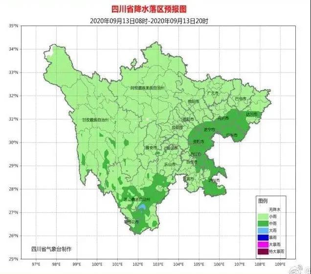 盆地各市阴天有小到中雨,其中广安、南充、遂宁、资阳、内江、自贡、宜宾、眉山8市局部有大雨;川西高原阴天间多云有阵雨或雷雨,其中甘孜州南部有中到大雨;攀西地区阴天有中到大雨,南部局部有大雨。