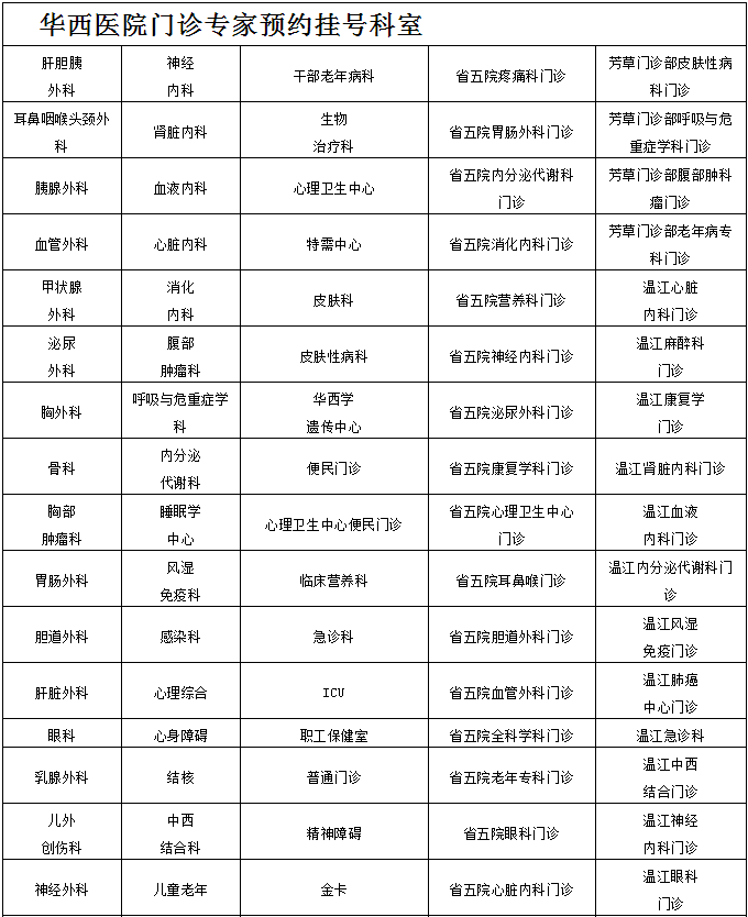 一、华西专家门诊预约挂号服务