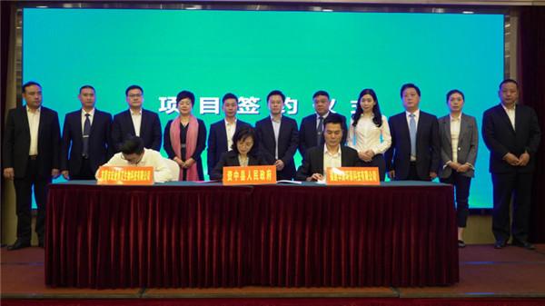 会上,资中县人民政府副县长吴小平与福建华涞环保科技有限公司总经理王永华、宏业博艾生物科技有限公司总经理王洪君进行了项目签约。