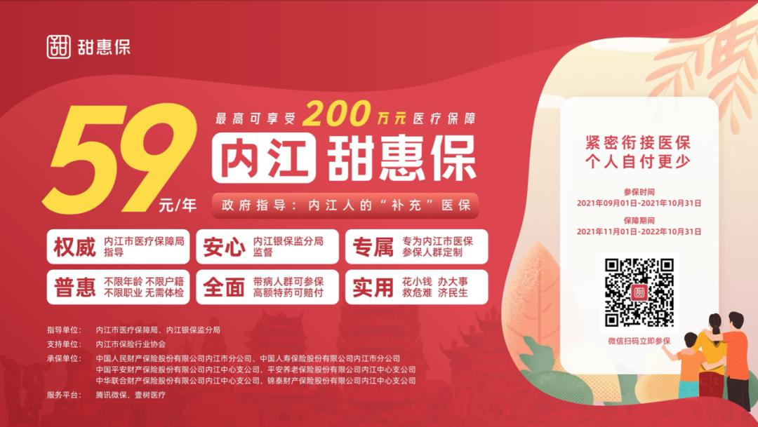 内江“甜惠保”正式上线,一年59元最高保障200万