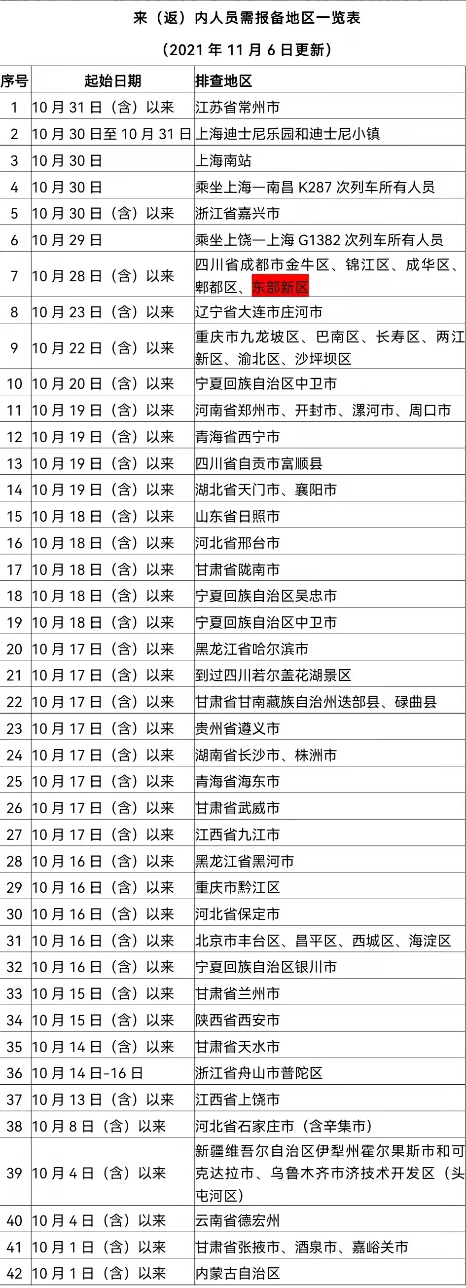 有阳性病例地区旅居史、红码、黄码及与阳性病例轨迹有交集的人员,请抵达内江后2小时内主动向所在村(社区)、单位和入住酒店报备,积极配合社区做好核酸检测、集中隔离、居家隔离、健康监测等疫情防控措施。