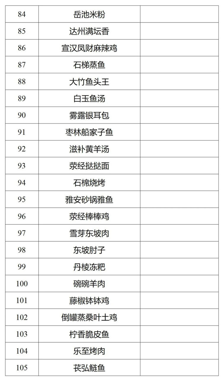 江粉儿从四川省商务厅官网获悉,经市(州)评选推荐、网络投票和专家评审,现对省级“天府名菜”拟认定名单予以公示。公示期为11月30日—12月6日。
