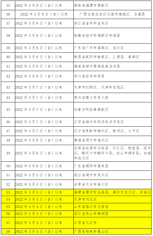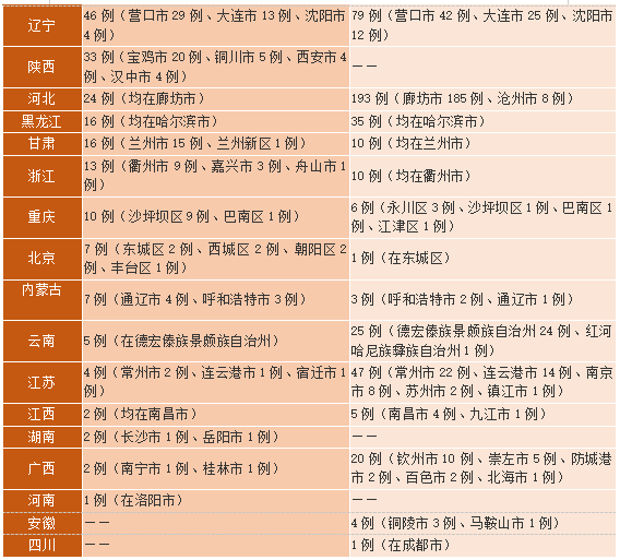 新增排查地区(16个):北京丰台区,福建省福州市仓山区、闽侯县、莆田市仙游县、漳州市龙文区、芗城区,河南省焦作市修武县,广西南宁市兴宁区、百色市右江区,天津市河北区,山东省临沂市兰陵县,浙江省舟山市嵊泗县,江西省九江市,广西省桂林市象山区、山东省聊城市经开区、湖南省邵阳市新宁县