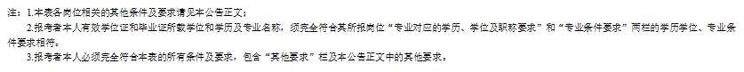 5.具备本公告具体招聘岗位要求的条件和资格(详见附件2《岗位和条件要求一览表》)。其中,报考者本人有效毕业证、学位证上的学历、学位及专业,必须与拟报考岗位的学历、学位及专业要求完全一致。