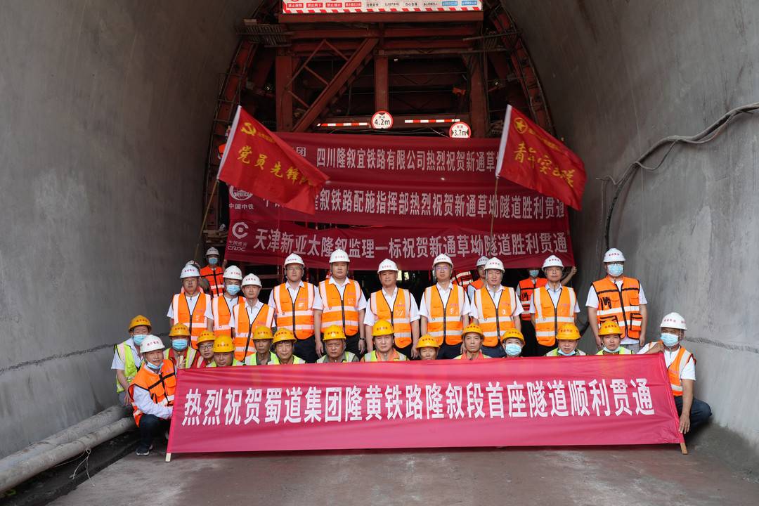 新通草坳隧道位于四川省泸州市纳溪区护国镇沙田村,2021年10月26日正式开始施工建设,全长220m,最大埋深约31m。“在保安全的前提下,抢工期、抓质量,新通草坳隧道的顺利贯通先后克服了工期紧、开挖面小、出渣不便利等种种困难。”蜀道集团四川路桥隆黄铁路四分部项目经理刘丹说。