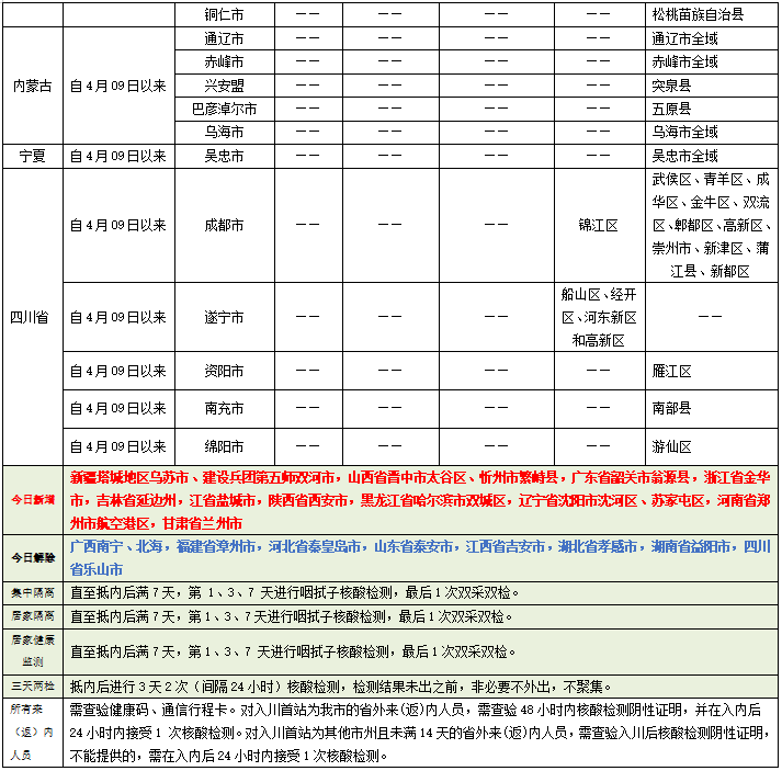 内江市疫情防控重点地区提示表(2022年4月16日)