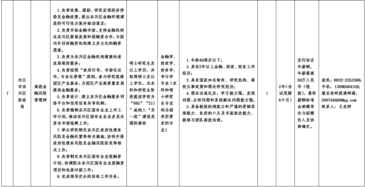 (七)内江市东兴区财政局高级金融风险管理师1名。