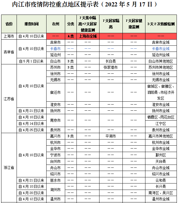 内江市疫情防控重点地区提示表(2022年5月17日)