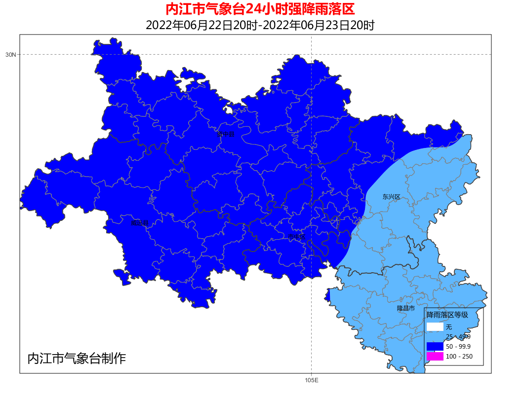 时间:2022-06-22 15:44:44 来源:内江市气象台刚刚,内江市气象台发布暴雨蓝色预警,详情如下: